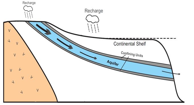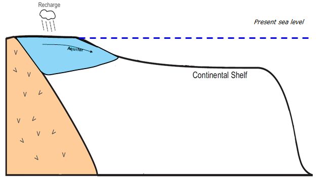 Meteoric recharge and topographically-driven flow are the most important sources of groundwater recharge in terrestrial settings. In passive continental margins, topographically-driven meteoric (TDM) groundwater is only one of a range of drivers of offshore groundwater flow. Other drivers include seawater recirculation, sediment loading, geothermal convection, and diagenesis. Sea level has been much lower than today for 80% of the Quaternary, resulting in the emergence of extensive sections of continental shelf, a reduction of pressure exerted by the sea water column, as well as steepening of the hydraulic gradient and an increase in hydraulic head. The potential of TDM recharge to establish extensive water tables, create massive groundwater fluxes, and generate pore overpressures and discharges across the continental shelf and upper continental slope must have been significantly higher during the majority of the last 2.6 Ma than it is today. Considering that geothermal convection is strongest beneath the continental slope and tends to be dominated by TDM flow during sea level lowstands, whereas sediment loading is most important during rapid deglaciations in high sedimentation zones, TDM recharge is likely a very important driver of offshore groundwater systems in continental shelves and upper slopes globally.